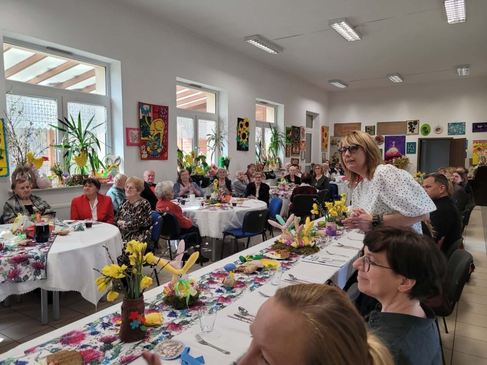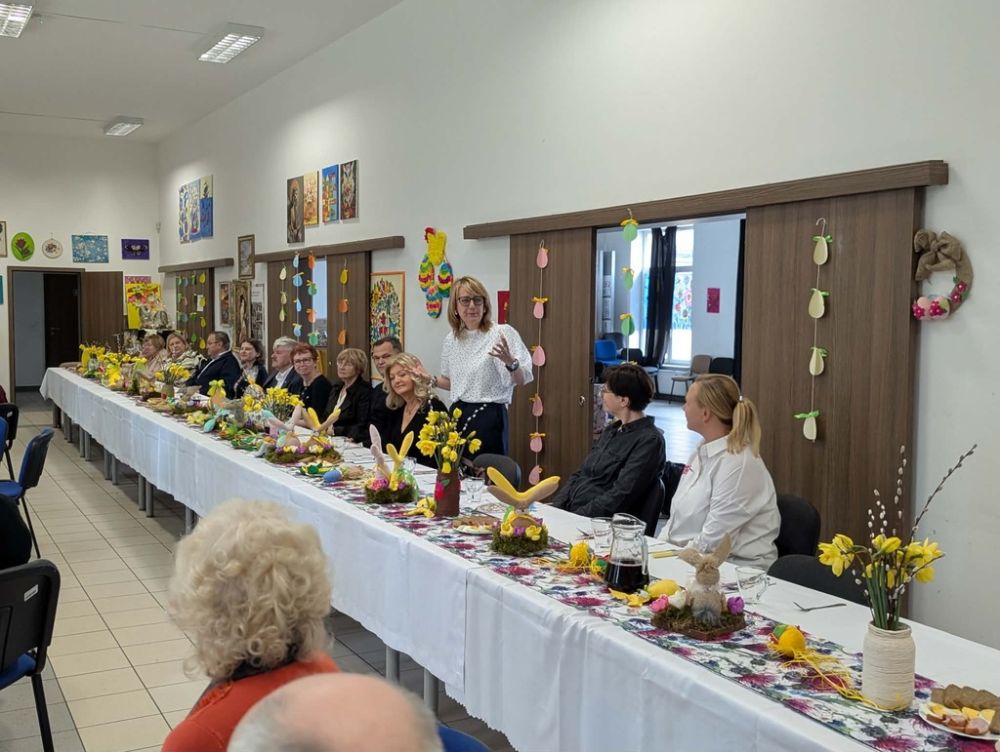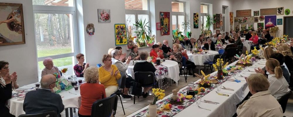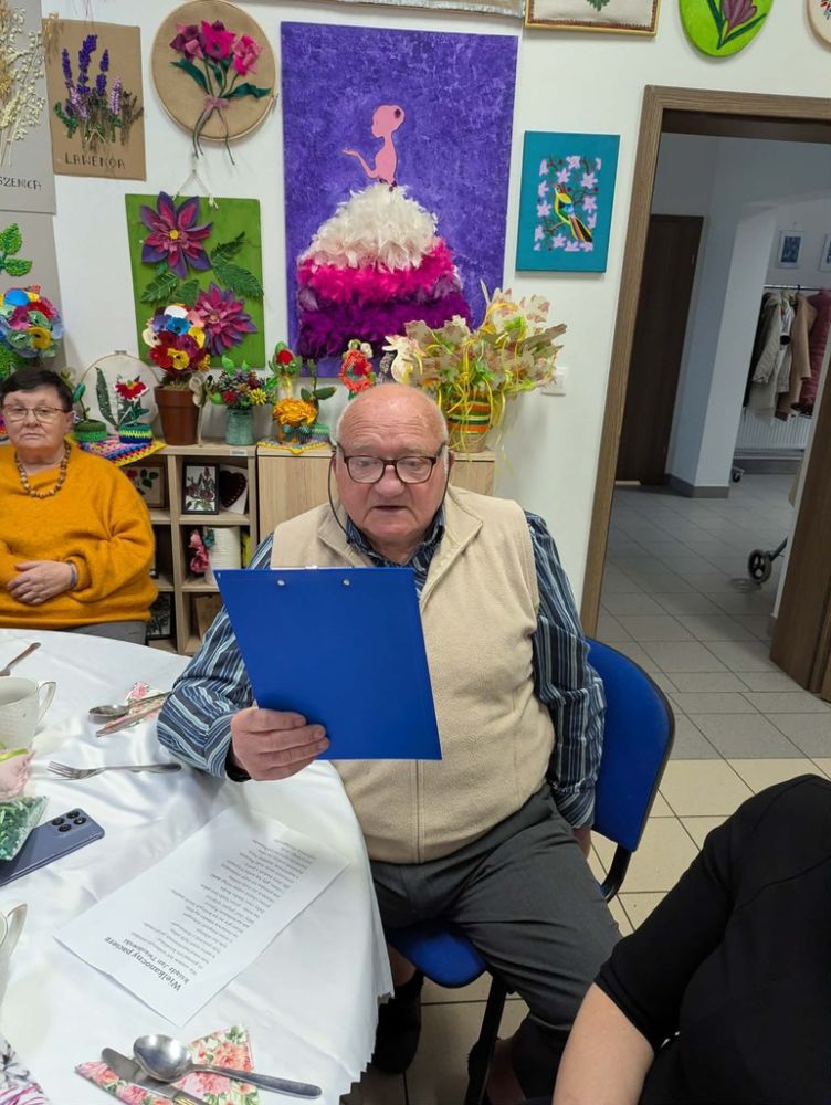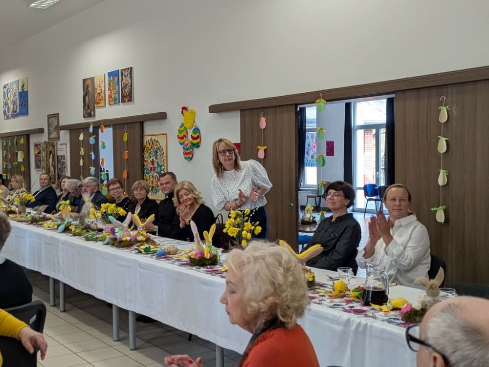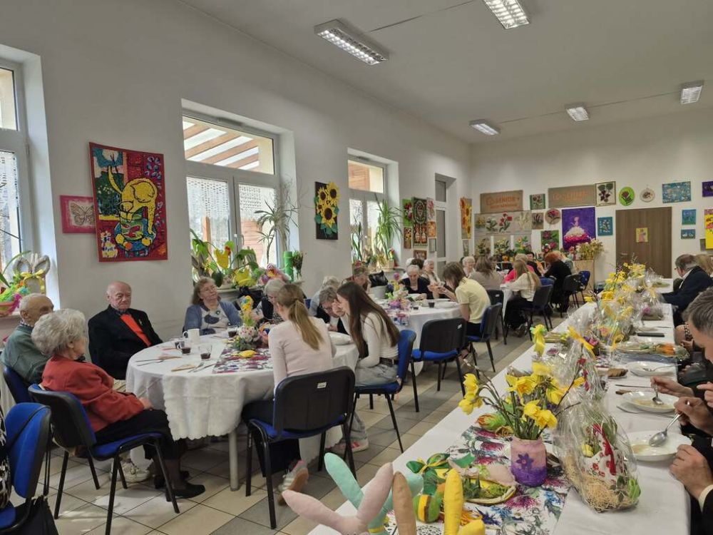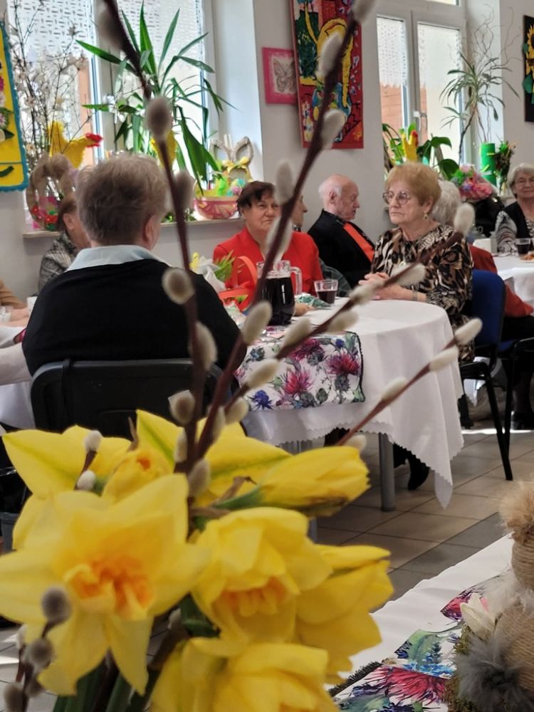 Wielkanocny obiad w Dzienny Dom "Senior+" w Woli Karczewskiej nie był tylko spotkaniem przy stole był chwilą, w której czas jakby zwolnił i pozwolił nam pobyć naprawdę razem. Między talerzami i świątecznymi smakami pojawiło się coś więcej spokój, uważność i obecność. Rozmowy płynęły naturalnie, bez pośpiechu, z miejscem na śmiech . W takich momentach nie potrzeba wielkich gestów wystarczy wspólny stół, życzliwe spojrzenie i świadomość, że nikt nie jest tu sam.