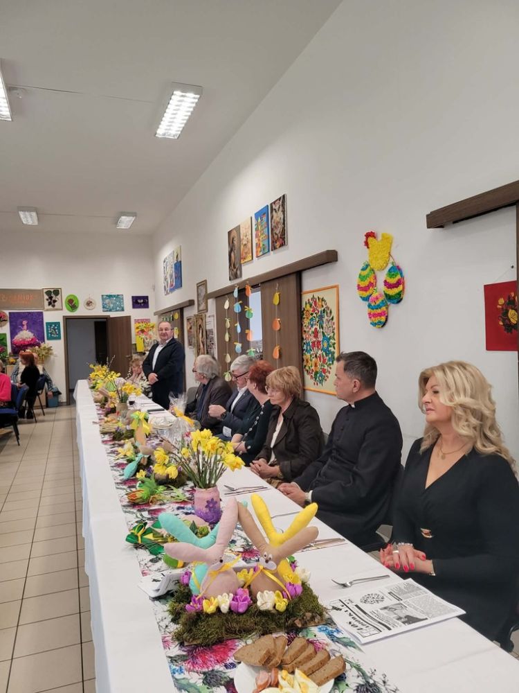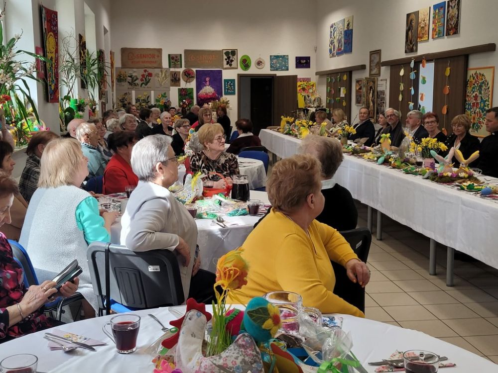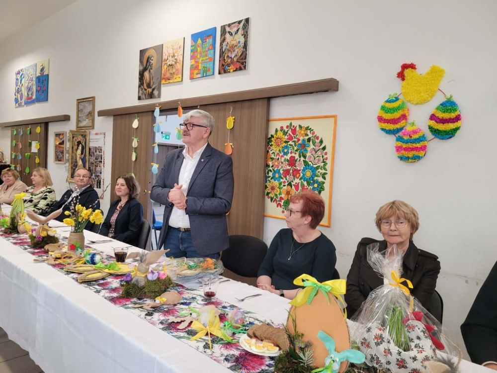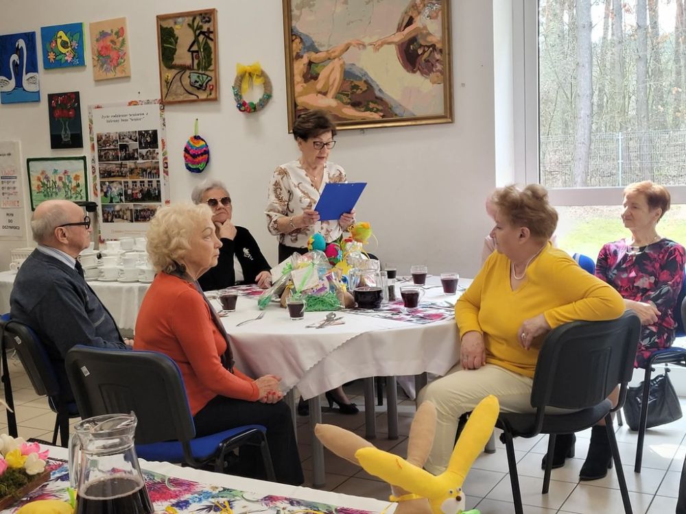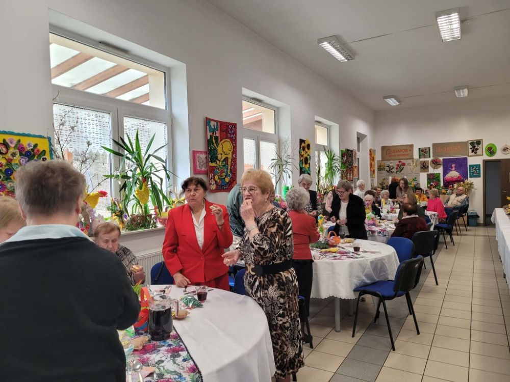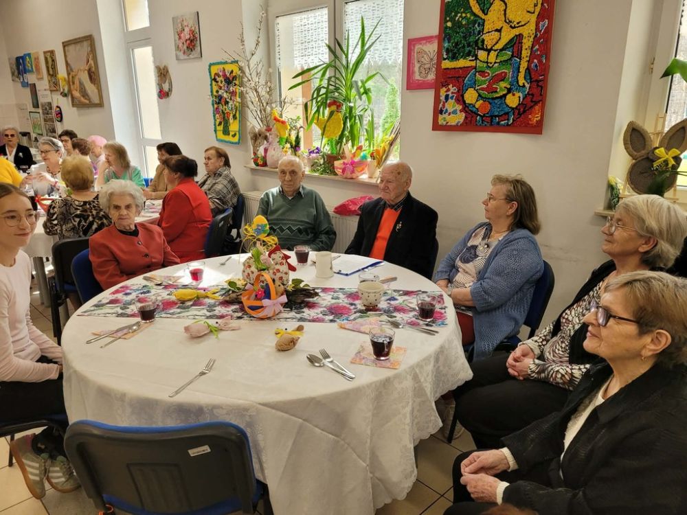 Wielkanocny obiad w Dzienny Dom "Senior+" w Woli Karczewskiej nie był tylko spotkaniem przy stole był chwilą, w której czas jakby zwolnił i pozwolił nam pobyć naprawdę razem. Między talerzami i świątecznymi smakami pojawiło się coś więcej spokój, uważność i obecność. Rozmowy płynęły naturalnie, bez pośpiechu, z miejscem na śmiech . W takich momentach nie potrzeba wielkich gestów wystarczy wspólny stół, życzliwe spojrzenie i świadomość, że nikt nie jest tu sam.