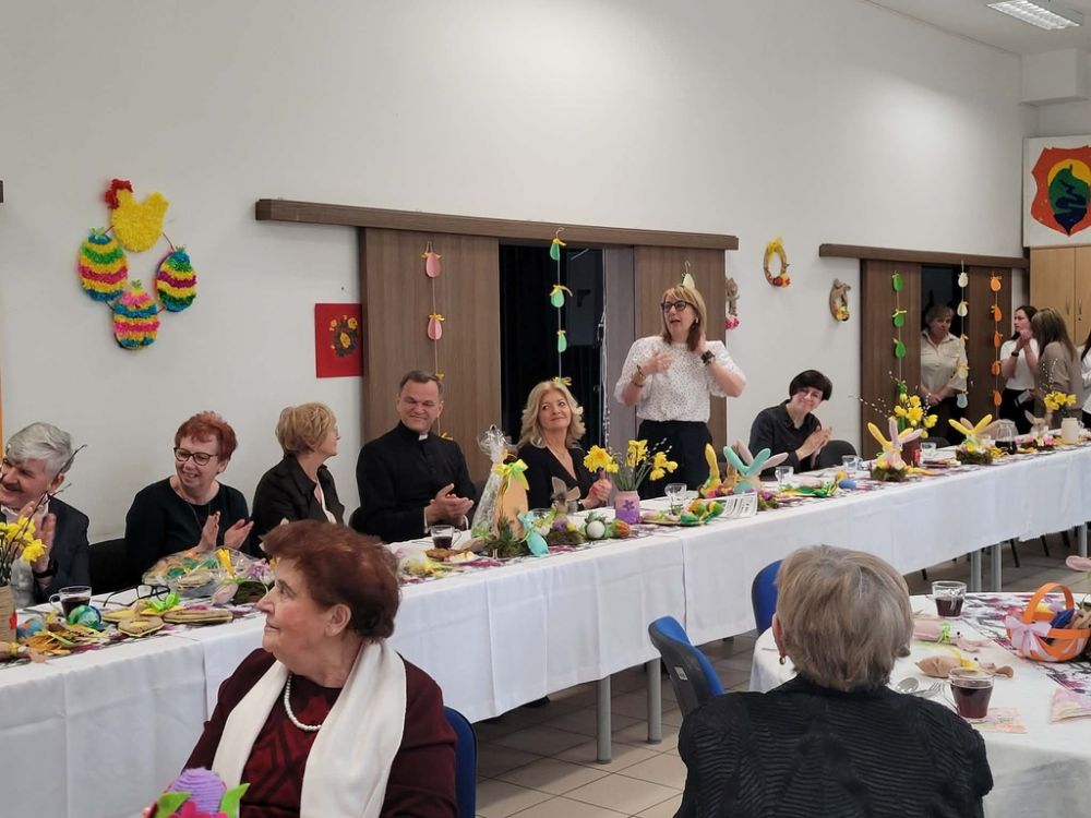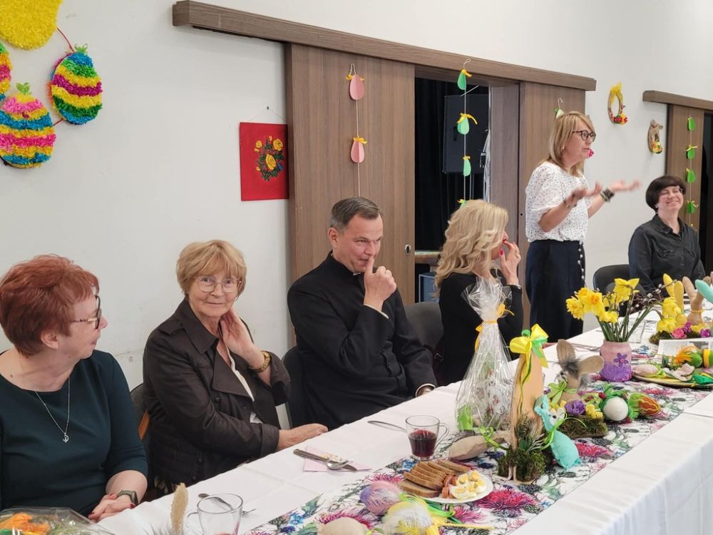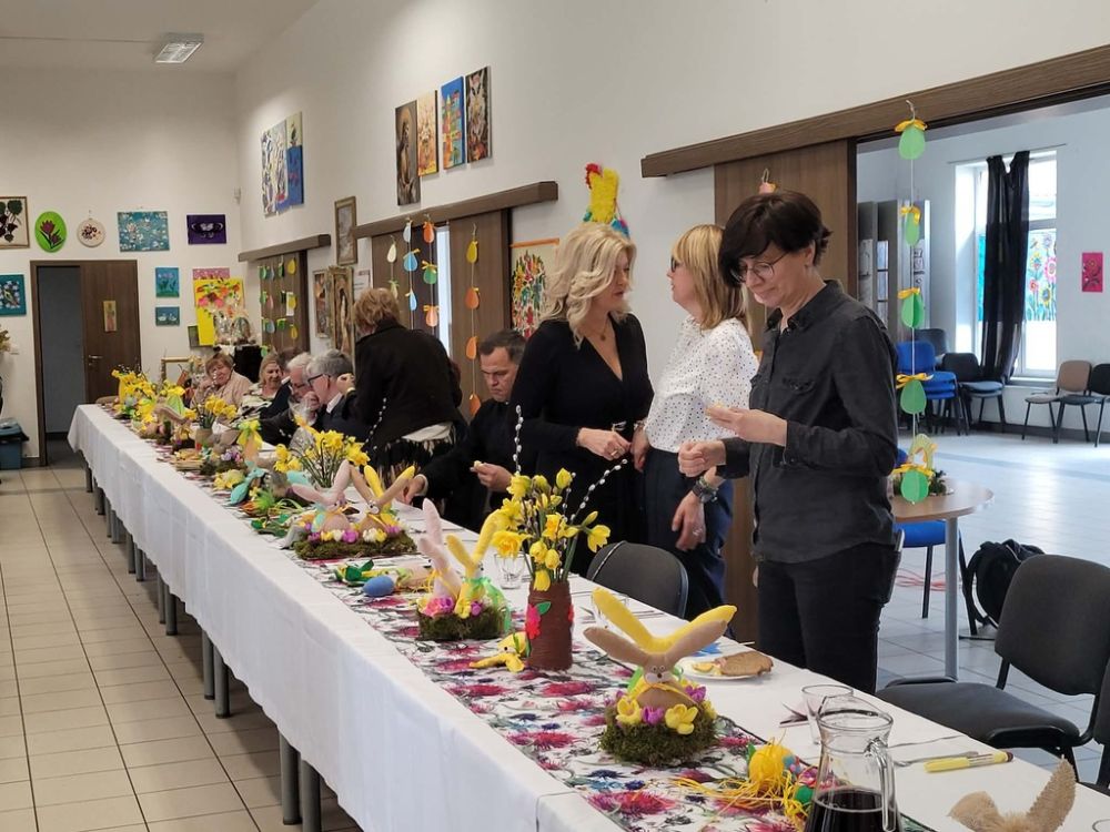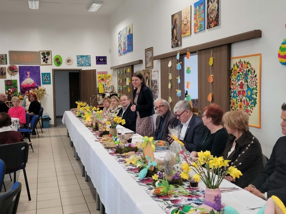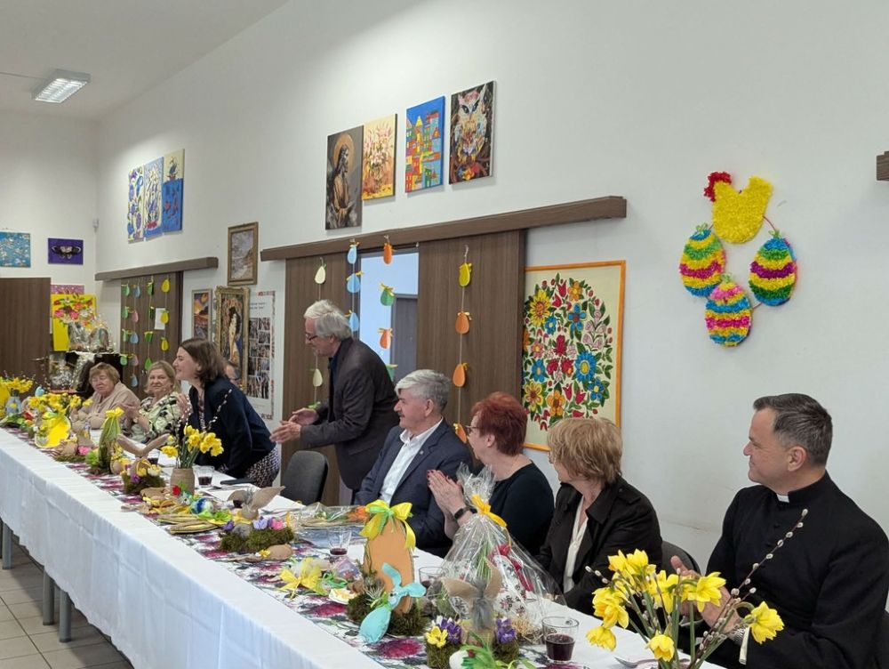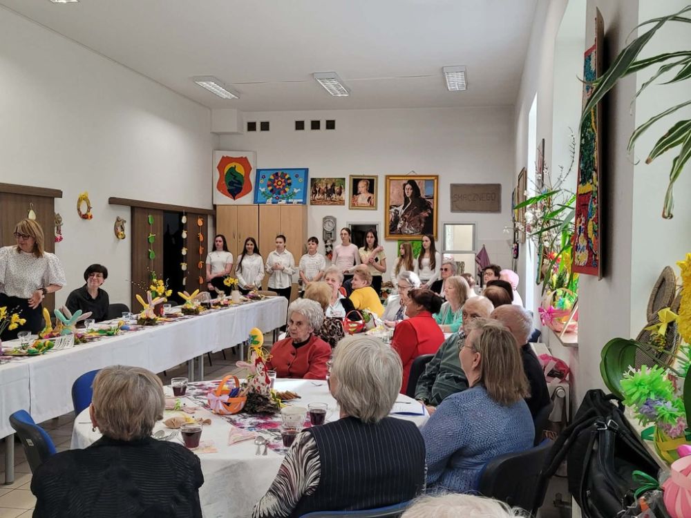 Wielkanocny obiad w Dzienny Dom "Senior+" w Woli Karczewskiej nie był tylko spotkaniem przy stole był chwilą, w której czas jakby zwolnił i pozwolił nam pobyć naprawdę razem. Między talerzami i świątecznymi smakami pojawiło się coś więcej spokój, uważność i obecność. Rozmowy płynęły naturalnie, bez pośpiechu, z miejscem na śmiech . W takich momentach nie potrzeba wielkich gestów wystarczy wspólny stół, życzliwe spojrzenie i świadomość, że nikt nie jest tu sam.